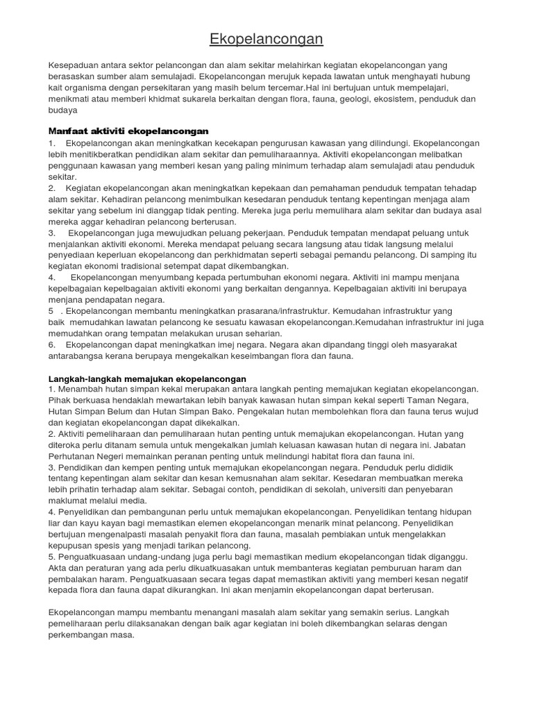 Bahan Membuat Karangan Tentang Ekoplancongan Spm Pdf